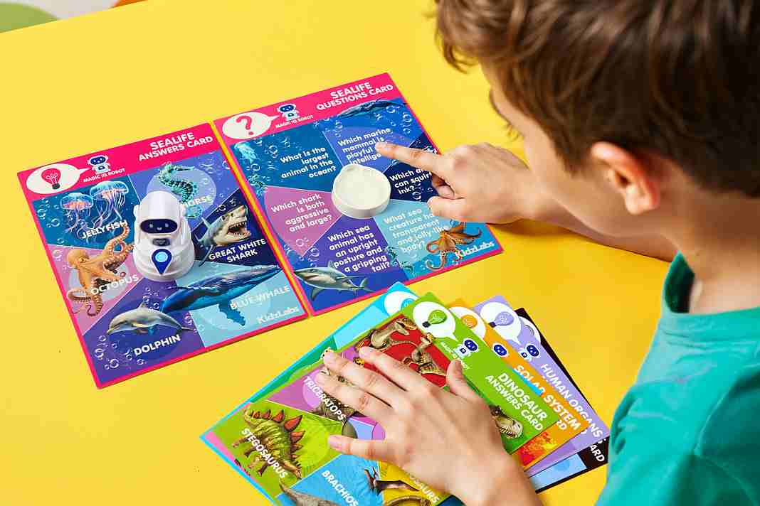 Με 36 συναρπαστικές ερωτήσεις και απαντήσεις γύρω από Δεινόσαυρους, Ηλιακό Σύστημα, Άγρια Ζώα, Θαλάσσια Ζωή, Ανθρώπινο Σώμα και Μαθηματικά, τα παιδιά μαθαίνουν παίζοντας και ανακαλύπτουν τον μαγικό κόσμο της επιστήμης. Χάρη στον έξυπνο μηχανισμό με μαγνήτες, το Ρομπότ δείχνει πάντα τη σωστή απάντηση, προκαλώντας ενθουσιασμό σε μικρούς και μεγάλους.