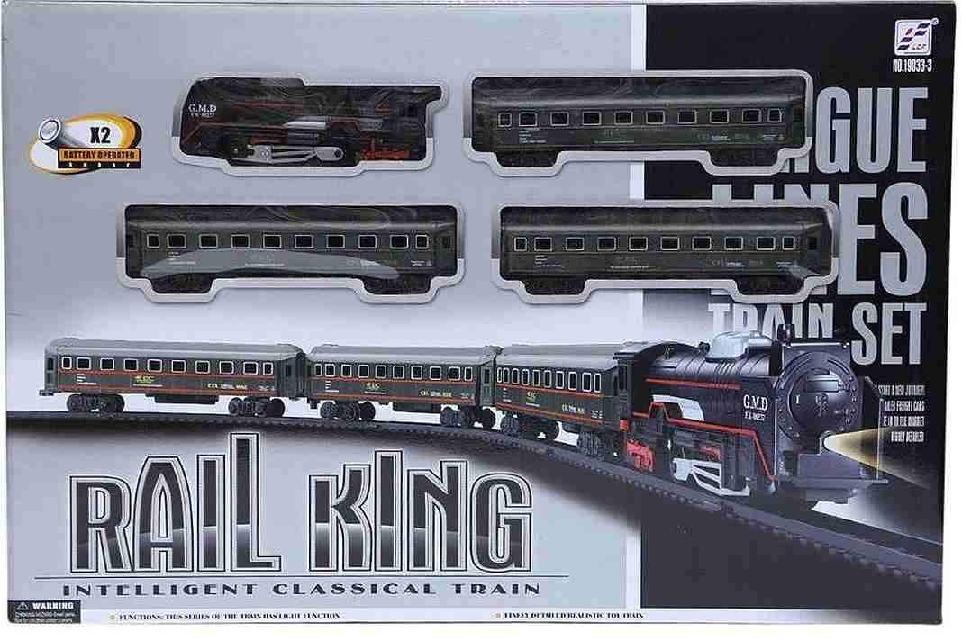 Το Rail King Intelligent Classical Train περιλαμβάνει 1 ατμομηχανή, 2 φορτηγά βαγόνια και ξύλινη σιδηροδρομική γραμμή. Τα τμήματα σιδηροδρομικής γραμμής συνδέονται εύκολα για να δημιουργήσουν μια κυκλική διαδρομή.