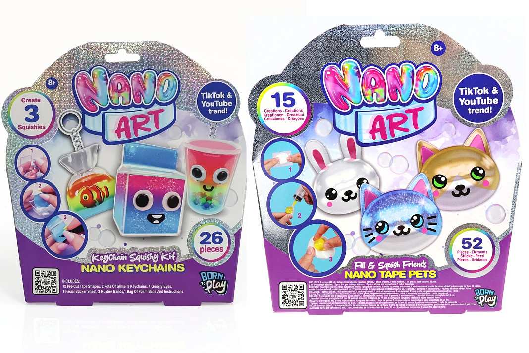 Το Nano Art βασίζεται σε ειδική nano-ταινία διπλής όψης, η οποία επιτρέπει τη δημιουργία εντυπωσιακών “bubble” και squishy κατασκευών με έντονο αισθητηριακό αποτέλεσμα ASMR (Autonomous Sensory Meridian Response). Οι χρήστες μπορούν να διαμορφώσουν πρωτότυπες δημιουργίες και να τις γεμίσουν με υλικά όπως slime, πλαστελίνη, glitter, χάντρες και διακοσμητικά στοιχεία, δημιουργώντας μοναδικές υφές και οπτικά εφέ. Απευθύνεται κυρίως σε παιδιά 6+ και σε δημιουργικούς pre-teens που ακολουθούν ενεργά τις τάσεις των social media.