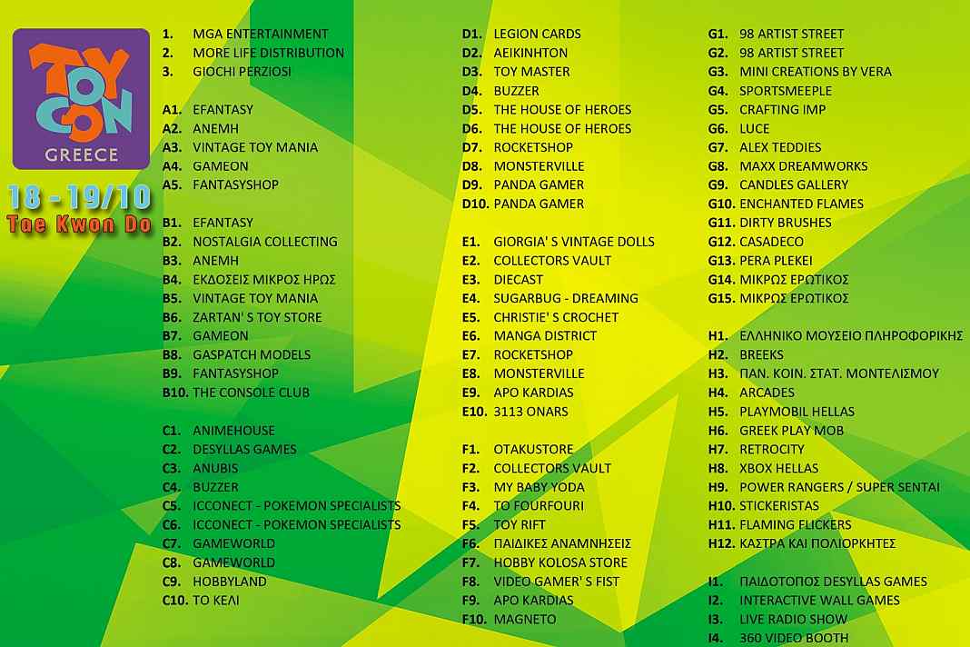 Δείτε τον πλήρη κατάλογο των εκθετών της ToyCon που σας παρουσιάζουμε, προκειμένου να βρείτε εύκολα και γρήγορα το περίπτερο που σας ενδιαφέρει.